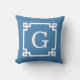Steel Blue Wht Greek Key Frame #2 Initial Monogram Cushion