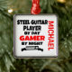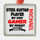 This ornament featuring the quote "Steel Guitar Player by Day Gamer by Night" is perfect for any steel guitar player that loves playing video games.