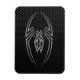 This metallic spider is designed with long sharp points and simple stylish lines. The metal arachnid has four of its legs reaching up and four pointing down creating and aggressive, symmetrical pattern. The spider sits on a steel mesh background which creates a sleek industrial look.