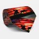 A big American flag and a cowboy roping a steer off of his horse. A beautiful country western cowboy neck tie.