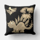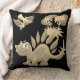 Delightful throw pillow with cartoon dinosaurs: a stegosaurus and a pterosaur, also known as a pteranodon or pterodactyl