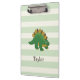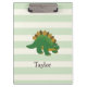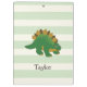 Cool, colourful kid's green and tan prehistoric stegosaurus dinosaur, dino design on pastel mint green and off white stripes pattern. Perfect gift for baby, toddler, kids, children, teens, or adults! Personalised the design by adding a child's name or custom text. Visit our store, Birthday Party House, for more great customisable boy and girl products!