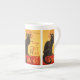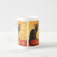 A charming classic Art Nouveau Bone China mug featuring a poster art for the cabaret Le Chat Noir, painted by the Swiss-born French Art Nouveau painter and printmaker Théophile Alexandre Steinlen.