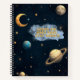 A cosmic composition of planets, a crescent moon, and golden stars, showcasing an uplifting message that encourages ambition, perseverance, and humility amidst a dreamy night sky.