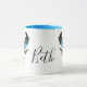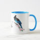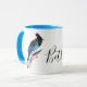 In blues, turquoise, black and hints of taupe, a feathery Steller's Jay sits on his Japanese Cherry Blossom perch observing the activity below. These beautiful blue birds are native to British Columbia and have a distinct "clatter" sounding chirp. This illustration was entirely drawn using a mouse - and one of the many illustrations in my art collections on Zazzle. Make it your own or give as a gift with a fully customisable text option.