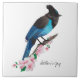 In blues, turquoise, black and hints of taupe, a feathery Steller's Jay sits on his Japanese Cherry Blossom perch observing the activity below. These beautiful blue birds are native to British Columbia and have a distinct "clatter" sounding chirp. This illustration was entirely drawn using a mouse - and one of the many illustrations in my art collections on Zazzle. Make it your own or give as a gift with a fully editable and customisable text option.