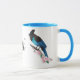 In blues, turquoise, black and hints of taupe, a feathery Steller's Jay sits on his Japanese Cherry Blossom branch observing the activity below. These beautiful blue birds are native to British Columbia and have a distinct "clatter" sounding chirp. This illustration was entirely drawn using a mouse - and one of the many illustrations in my art collections on Zazzle. Make it your own or give as a gift with a fully customisable text option.