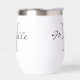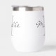 Stemless wine tumbler glass with custom monogram. Elegant script typography with monogrammed initial letter. Classy design for home, fancy wedding party, bridal shower, engagement, anniversary, birthday etc. Add your own name or family surname. White or personalised background colour. Colours can be changed. Exclusive drinking gifts and party favours. Double sided print.