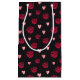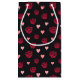 Here we have a lovely gift bag with a red stenciled rose & pink hearts pattern on a dark charcoal background. This bag will make a fabulous addition to a gift for your friends and family.