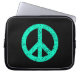 Stencilled Peace Symbol - Turquoise on Blk Laptop Sleeve