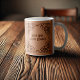 Get your brain in gear with a coffee before tackling that job. A mug featuring a caption and an original knotwork design in weathered brown, inspired by Celtic sources. Use "Personalise this template" to change the "Step One Drink Coffee" if desired. The tribal knot work is framed by ornamental swirls, and pattern and text sit upon a light brown background which can be changed to a different colour before purchase if desired. Knotwork is a recurring feature of Celtic art, often seen adorning stone and metal artefacts, but can also tie in with fictional themes of mythology or swords and sorcery.