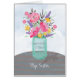 Wish your step sister blessings on their anniversary. This pretty mason jar vase holds a mixed bouquet of watercolor-look flowers on a striped table. Pretty religious card to say happy anniversary.