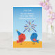 The "Step Son First 4th of July Cute Birds Watching Fireworks" card is a heartwarming tribute to celebrate a stepson's inaugural Independence Day. The cover features charming illustration of birds with their eyes wide with wonder as they behold a vibrant fireworks display in the night sky. The background sets a serene scene with blues, illuminated by bursts of red, yellow, and blue fireworks, evoking the festive spirit of the 4th of July.