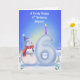 This whimsical winter illustration is perfect for celebrating your stepson's sixth birthday designed to be fully winter with colors and details. A cheerful snowman stands proudly beside the snowy “6” he has just built, admiring his handiwork with a joyful expression. Snowballs are scattered around the base, adding playful movement, while soft winter flowers bring a gentle seasonal touch. The cozy palette and charming details create a magical winter atmosphere kids adore.