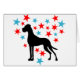 Dogge vor Herz aus Sternen in zwei Farben, hier hellblau und rot - Great Dane and a heart of stars. dogos alemanes