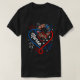 I give wanted to give this a 4 instead of a 5 because these Basic DARK T0shirts run unexpectedly SLIM or Narrow. Which is great if you do not have a potbelly, but I have a paunch. It isn't the shirt's fault that I've got a beer belly. The design and shirt itself is a quality cotton shirt. The color is more of a deep purple, but still a very pretty color. The Basic DARK T-shirts run a bit SLIMMER than the Basic Ts. The neck is a fraction narrower (or seems to be narrower) also. I'm a paunchy middle-aged woman and my neck is 12 inches (31cm) thick and the neckline fell about the same as in the photo of the man, and I had the desire to tug it a bit. So if you're a thick necked man or like loose shirts, be aware these are slimmer shirts. Once I get rid of my lockdown paunch it'll look great. The shirt washed well in cold water with no apparent bleeding. We don't have a dryer, so it hung dry. Did not shrink. Love the colors and the design. The design looks smaller on my shirt than it does on the model on-line. But still, it looks good on the shirt. The printing looks as it does on the model, just the size seems fractionally smaller. Washed garment in cold water, hung dry and design appeared unaffected.