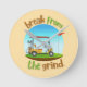 A clock that says "Break from the Grind" with an image of a golf cart parked near a golf hole is a relaxing and sporty design, often worn by golf enthusiasts or those seeking a break from their daily routine. It suggests a desire to escape the stresses of everyday life and enjoy the peaceful and challenging sport of golf.