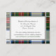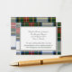 Lovely tartan plaid wedding enclosure card made using the colourful Stewart clan plaid, of red, white, and green as a background. A white text area is surrounded by a pewter like frame. Personalise all the information for your reception and anything else you want on the card.