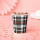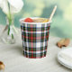 Plaid paper cup with the traditional Scottish red, green, yellow, white Stewart Dress tartan plaid pattern. Matching napkins and paper plates are available.