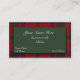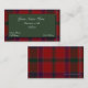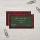 Stately looking business card template, done in a traditional Scottish Tartan Plaid of the Stewart clan. A solid green text area over the red and green plaid, has white coloured text. Personalise all the text to suit your needs.