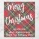 Modern white brush script, Merry Christmas, on a Royal Stewart Tartan plaid background, greeting and business or personal name. Perfect bottle label for the holidays, for colleague, client, friends, anyone. You will receive six 3.5" x 4" printed labels per order at this fantastic price and excellent printing. Easily change text using the Template provided. See "About This Product" at side for more information.
