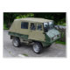 The Haflinger is a small, lightweight, four wheel drive, high mobility vehicle about 3.5 m long and 1.5 m wide, powered by a 643 cc flat twin horizontally opposed,
