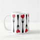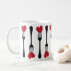 Stick a fork in my heart and call it done. A row of forks spearing a heart make a pattern across this mug. This is the a perfect gift to give the foodie on Valentine's day or any day of the year. Available with matching products.