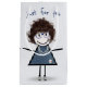 Cute stick girl figure with sneakers, hair, blue glasses, denim dress, and a pearl necklace.