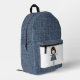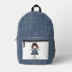 Stick Figure Girl With Daisies and Blue Denim Printed Backpack