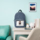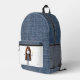 Stick Figure Girl With Daisies and Blue Denim Printed Backpack