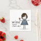 A cute stick figure girl with hair and wearing a blue denim dress, pearl necklace, and sneakers holding a glass of red wine with a definition of wine.