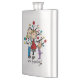 The product is a good size and came exactly as it was pictured. The lid is not attached to the flask, which could be dangerous on drunken nights... The print came out surprisingly well and looks very sharp. Would definitely recommend.