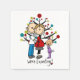 A cute stick figure design, great for parents of a toddler girl who are expecting baby number two! Features a stick figure dad, expectant mum, and toddler girl in front of the holiday tree. Text reads We're Expecting!