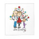 A cute stick figure design, great for parents of a toddler girl who are expecting baby number two! Features a stick figure dad, expectant mum, and toddler girl in front of the holiday tree. Text reads We're Expecting!