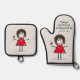 Stick Girl With Wine and Sneakers Oven Mitt & Pot Holder Set