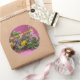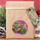sticker,large 3-inch,pink with spring flowers in yellow,blue,white and yellow letters: "Spring has sprung!"