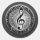 A black and white circular logo featuring a realistic music note. The design emphasises classic simplicity and elegance, making it ideal for music-related businesses or projects. The detailed rendering of the music note within a clean circular frame adds a touch of sophistication