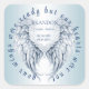 Angel Wings grief for a loved one on commemorative Sticker. A sticker with the name of the person being remembered, the sympathetic text "your wings were ready but our hearts were not", and their dates of birth/death. This memorial sticker can be used for Life Day Celebration, Memorial Day, and funerals, or sent as a sticker on an envelope or placed on a gift for a family member or friend.