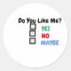 A sticker asking a question