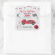 Get ready to celebrate in high gear with our race car-themed Thank you sticker! Featuring a playful red race car on a light grey background, paired with vibrant elements like a race helmet, speedometer, tire, finish flag, and party flags, this design is sure to rev up excitement. The bold retro-style text "He is a Fast One" showcases your little racer's name, making it uniquely theirs. All party details are easy to customise to make your celebration as special as possible. Perfect for parents planning a fun, action-packed party!