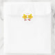 Two yellow cartoon stars are holding hands and smiling. They have small, round eyes and red shoes. There are several small pink hearts floating around them. The background is white.