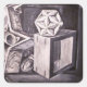 Sticker Detail Still Life ... black and white acrylic painting ... painted Summer 2005, at Illinois Central College.