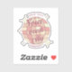 Sticker featuring a disco ball in pink, and apricot peach hues on white background and a customisable text option for your city name.