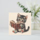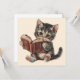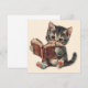 Cute cat reading book retro children illustration