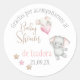 Sticker redondo de Chica Baby Shower español con elefantito gris