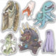 Sheet of stickers featuring monster tea party characters from the 2023 Goblin Circus Halloween display.