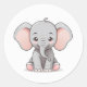 Sticker, Smiling Baby Elephant with Blush Cheeks, Classic Round Sticker