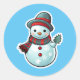 Sticker with a cute Snowman holding a leaf