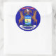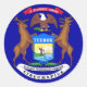 Crafted with attention to detail, this sticker proudly displays the flag of Michigan, featuring a dark blue field with the state coat of arms in the centre. The coat of arms includes an elk and a moose supporting a shield that depicts a lake with a sun rising over it, symbolising Michigan's natural beauty and resources.