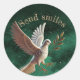 "Put your hands on our unique sticker! Featuring a dove symbolising peace and security sitting on a green olive branch representing growth and health. The phrase 'Send Smiles' is an invitation to spread joy and put a smile on the faces of your loved ones. Make your gifts special with the magic of this adorable sticker, allowing it to Conveying a positive message directly to people's hearts. Get it today and share the smiles!